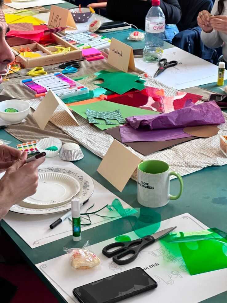 Participants recreate using colourful paper scraps a meaningful dish. Using the memory of this dish, participants explore experiences, traditions and practices. These becoming building blocks of a storyline that participants build into a new story in their own unique way. Stories are a way to exchange and preserve knowledges of personal context and culture, with the potential to bring about agency for changemaking.